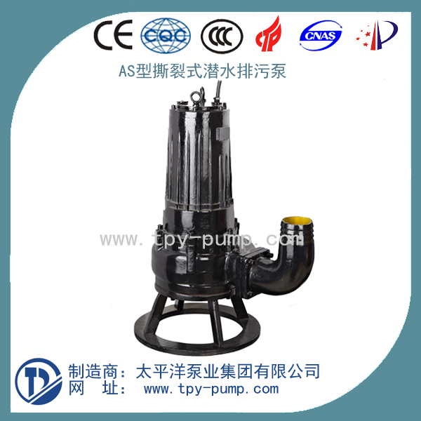 AS、AV型撕梨式排污泵采用德國ABS公司先進的技術,特別適用于輸送含有堅硬固體、纖維物的液體,以及特別臟、粘和滑的液體,。AS型撕裂式潛水排污泵主要部件由葉輪、泵體、底座、潛水電機組成。水泵軸和電機軸是同一根軸,由于撕裂式潛水排污泵位于整個排污泵最下端,它能最大限度抽吸地面積余污水。所有撕裂式潛水排污泵均裝有經調整好的撕裂機構,能將污水中長纖維、袋、帶、草、布條等撕裂后排出。因此,在污水中工作不會堵塞,運行極其可靠,產品執行JB/5118-2001《污水污物潛水電泵》標準